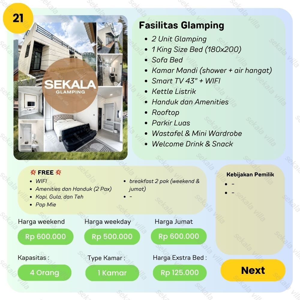 @glampingsekala Glamping Tawangmangu No.21 – Tersedia 2 unit – Kapasitas : 4 orang – Kamar tidur (King Bed) – Kamar mandi (shower & Water heater) – Tersedia (smart tv & wifi) – Free Amenities (perlengkapan mandi) – Kursi teras – Bangunan baru – Parkiran luas – Pemandangannya indah – Akses mudah NOMER ADMIN HANYA ADA YANG DI BIO #sekalaglamping #glamping #glampingtawangmangu #katalogglampingtawangmangu #staycation ♬ suara asli – Sekala Glamping