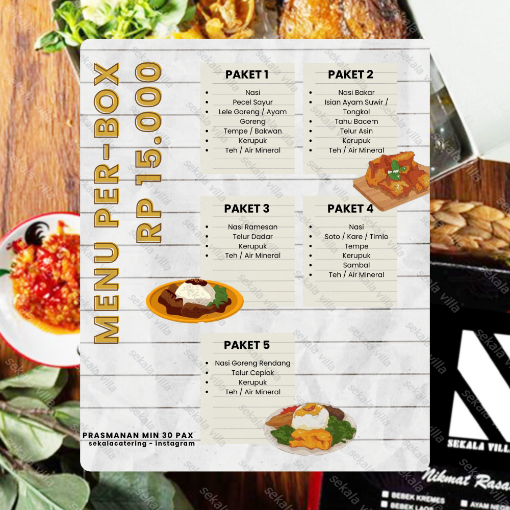 Catering menu yang kakak pesan sudah termasuk ongkir & tidak ada tambahan biaya apapun, villa ataupun pihak catering