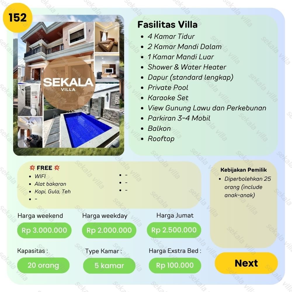 Villa Tawangmangu No 152 – Kami akan membantu anda mencari villa sesuai kebutuhan anda dari harga Rp. 700.000 – Rp. 6.000.000/ malam. Dengan senang hati admin kami akan membantu anda 😊 bisa telfon atau whatsapp