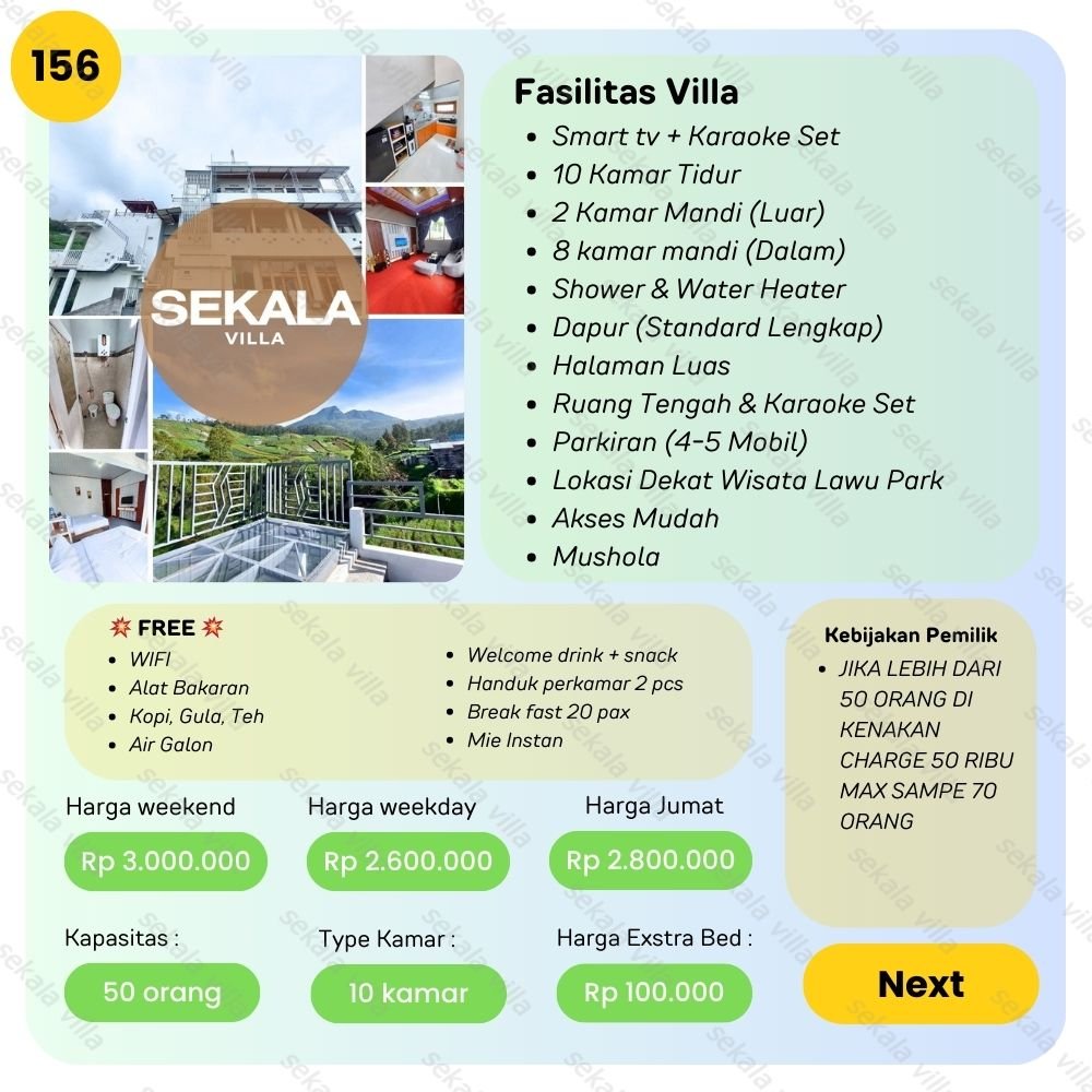 Villa Tawangmangu No 156 – Kami akan membantu anda mencari villa sesuai kebutuhan anda dari harga Rp. 700.000 – Rp. 6.000.000/ malam. Dengan senang hati admin kami akan membantu anda 😊 bisa telfon atau whatsapp