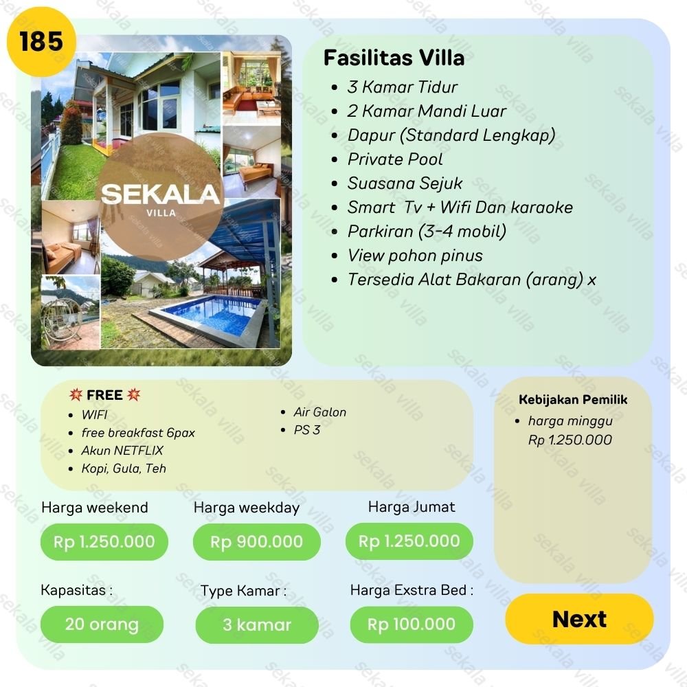 Villa Tawangmangu No 185 – Kami akan membantu anda mencari villa sesuai kebutuhan anda dari harga Rp. 700.000 – Rp. 6.000.000/ malam. Dengan senang hati admin kami akan membantu anda 😊 bisa telfon atau whatsapp
