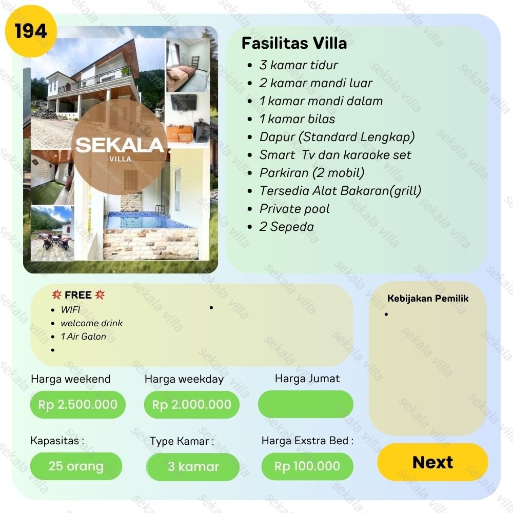 Villa Tawangmangu No .194 – Kami akan membantu anda mencari villa sesuai kebutuhan anda dari harga Rp. 700.000 – Rp. 6.000.000/ malam. Dengan senang hati admin kami akan membantu anda 😊 bisa telfon atau whatsapp