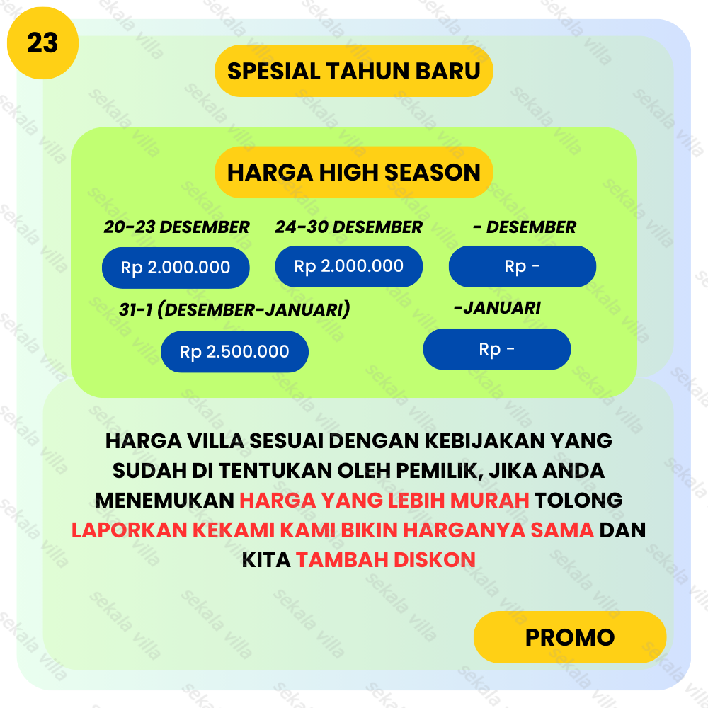 #harga yang tercantum adalah harga weekday