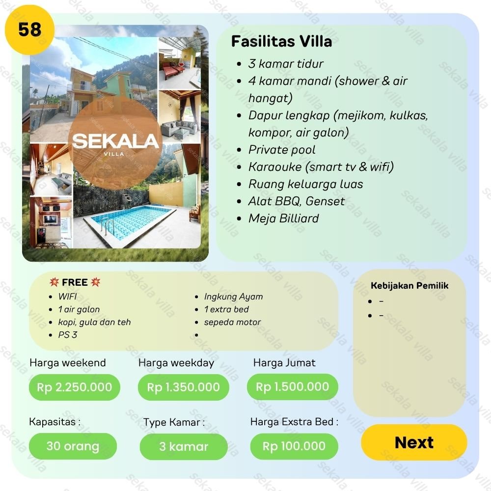 @sekalavilla Villa Tawangmangu – Kapasitas : 25 orang – 3 Kamar tidur – 4 kamar mandi (shower & air hangat) – Tersedia karaoke set (smart tv & wifi) – Perlengkapan dapurnya lengkap – Private pool – Balkon dengan pemandangan bukit dan hutan pinus – Tersedia alat bakaran – Parkirannya cukup untuk 3 mobil #sekalavilla #villatawangmangu #katalogvillatawangmangu #privatepool ♬ Tropical Resort! Fresh Tropical House.(1442737) – SK MUSIC
