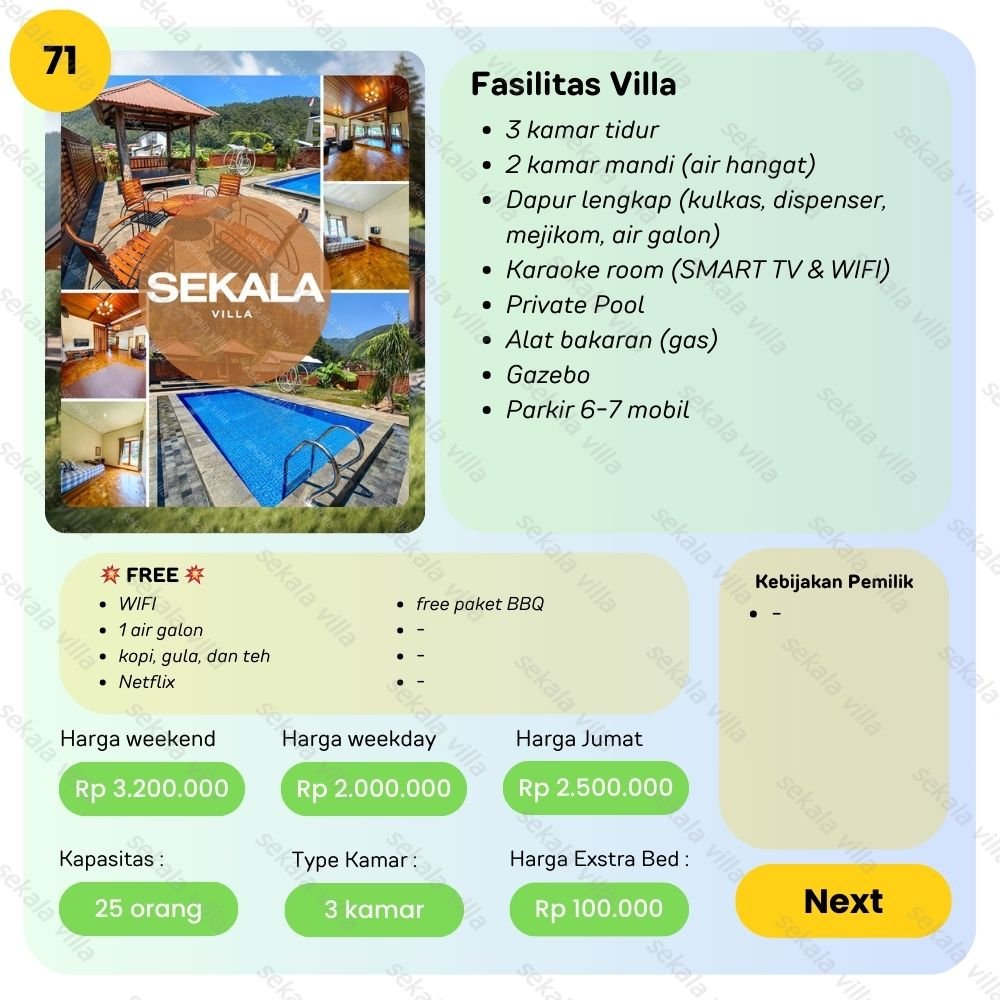 Villa Tawangmangu No 71 – Kami akan membantu anda mencari villa sesuai kebutuhan anda dari harga Rp. 700.000 – Rp. 6.000.000/ malam. Dengan senang hati admin kami akan membantu anda 😊 bisa telfon atau whatsapp