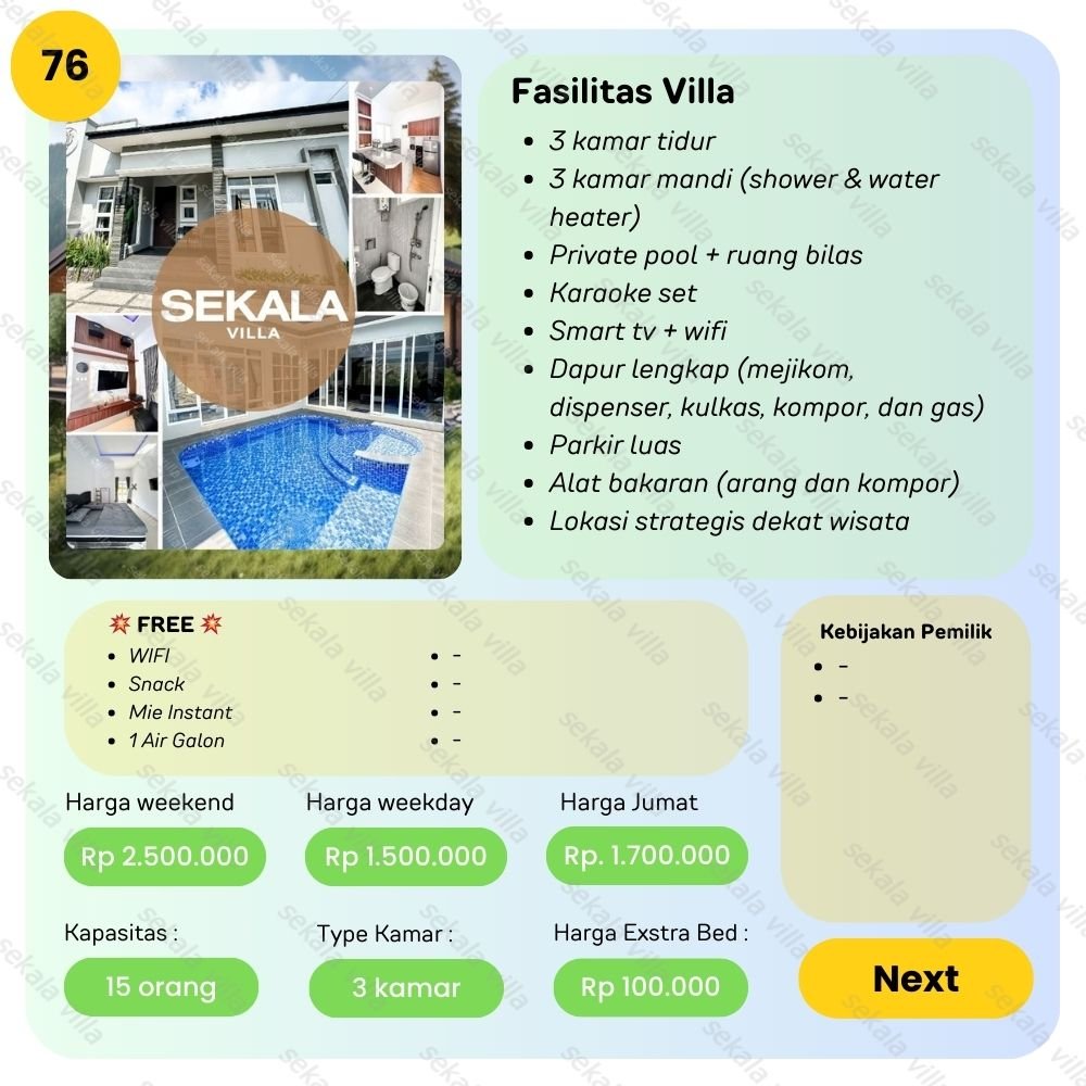Detail Villa Harga dan Fasilitas ada di slide ke 2