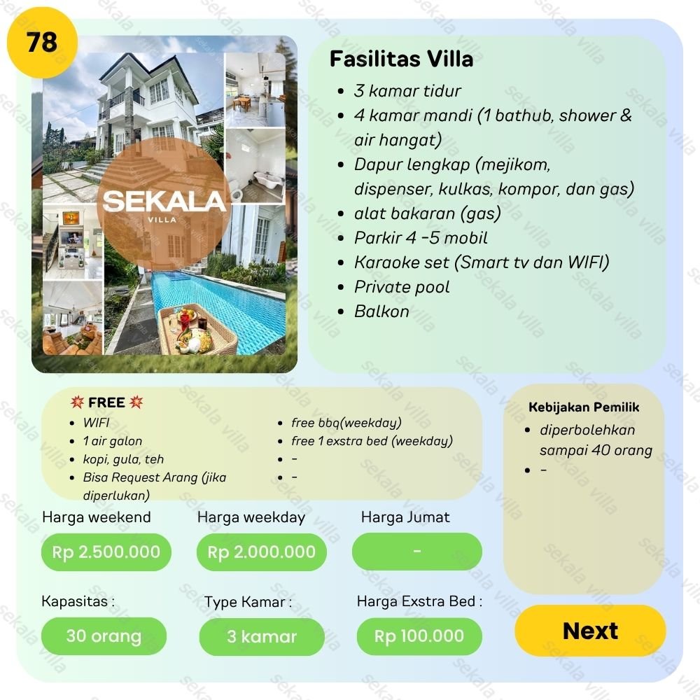 Villa Tawangmangu No 78 – Kami akan membantu anda mencari villa sesuai kebutuhan anda dari harga Rp. 700.000 – Rp. 6.000.000/ malam. Dengan senang hati admin kami akan membantu anda 😊 bisa telfon atau whatsapp