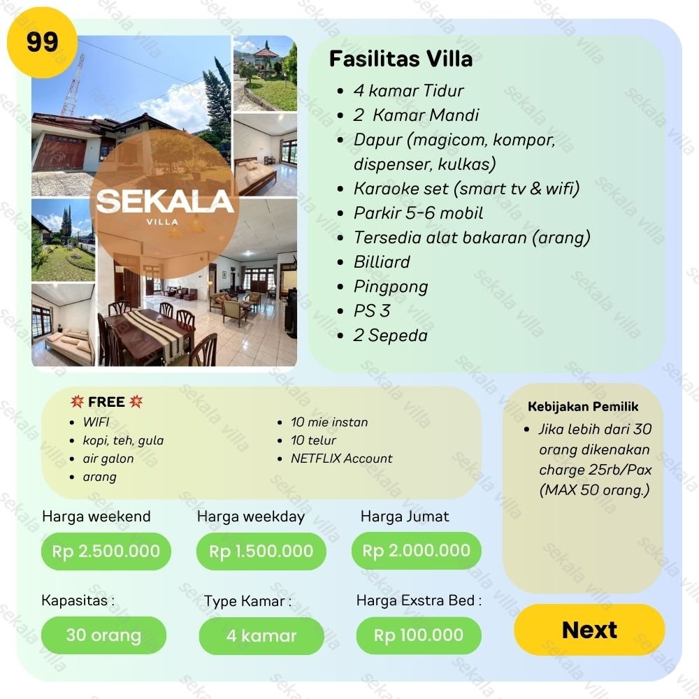 Villa Tawangmangu No 99 – Kami akan membantu anda mencari villa sesuai kebutuhan anda dari harga Rp. 700.000 – Rp. 6.000.000/ malam. Dengan senang hati admin kami akan membantu anda 😊 bisa telfon atau whatsapp